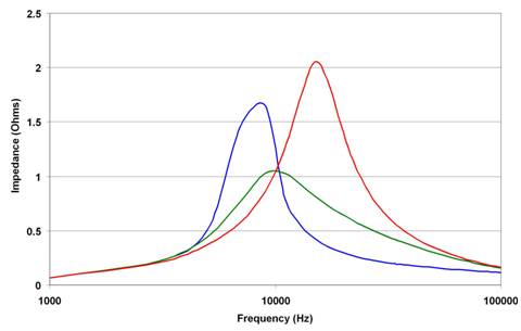 有趣的是,一旦选择了四个其他电路组件,那么就会有一个阻尼电阻的最佳选择。图5显示的是不同阻尼电阻情况下这类滤波器的输出阻抗。红色曲线表示过大的阻尼电阻。请思考一下极端的情况,如果阻尼电阻器开启,那么峰值可能会非常的高,且仅由 CO 和 LO 来设定。蓝色曲线表示阻尼电阻过低。如果电阻被短路,则谐振可由两个电容和电感的并联组合共同设置。绿色曲线代表最佳阻尼值。利用一些包含闭型解的计算方法(见参考文献 1)就可以很轻松地得到该值。