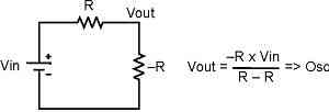 但是,开关的谐振滤波器与电源负阻抗耦合后会出现问题。图3显示的是在一个电压驱动串联电路中值相等、极性相反的两个电阻。这种情况下,输出电压趋向于无穷大。当您获得由谐振输入滤波器等效电阻所提供电源的负电阻时,您也就会面临一个类似的电源系统情况;这时,电路往往就会出现振荡。