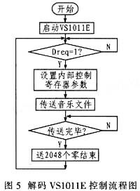 软件设计采用VS1011E音频解码器,其控制流程如图5所示。
