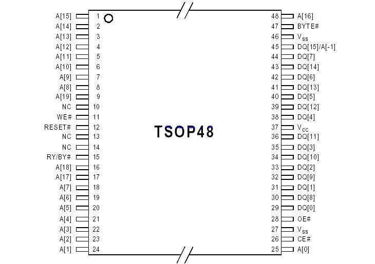 图1 HY29LV160引脚分布(TSOP48封装)