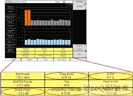 图7:误差矢量幅度(EVM)、峰值码域误差、频率误差、噪声底电平测试界面。