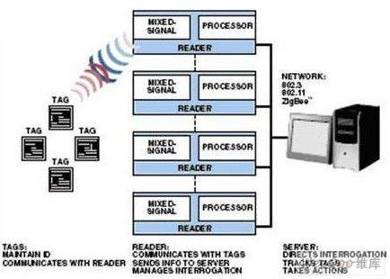总体而言,读取器提供了三项主要的功能:与标签进行双向沟通,以便将每个标签区隔开来;将接收到的资讯做初步处理;连接将资讯连回企业中的伺服器。