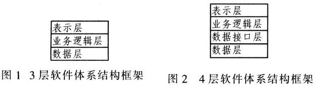 目前,在Internet/Intranet环境中,企业级的应用软件系统大多采用3层应用框架:表示层、业务逻辑层和数据层(图1)。在这种层次结构的软件框架中。每层为其上一层提供服务(服务提供者),并作为其下一层的客户(服务消费者),内部的层只对相邻的层可见,从而构成一个具有可移植性、可扩充性的兼容平台。
