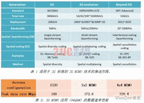 本文讨论多路输入多路输出(MIMO)技术在先进3G(HSPA++、LTE和 IMT-advanced)移动应用中的实现挑战与解决方案。借助增强的频谱效率,MIMO 能够保证实现更高的数据速率,并通过将电子信息嵌入到空间处理单元来提高无线系统的性能。空间处理包括在发射机上进行空间预编码和在接收机上进行空间后编码,从信息信号处理理论角度讲,它们彼此之间进行的是双重处理。MIMO 技术与 OFDM(正交频分多路复用)相结合可以充分利用无线信道空间分集和多径的特征,实现先进的 3G 宽带无线通信和高频谱利用率。