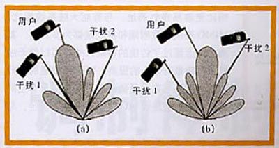 图 3自适应阵列智能天线(a)与束转换智能天线(b)的比较
