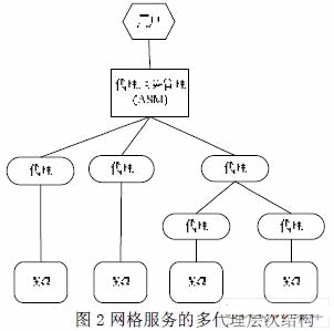 多代理层次模型如图2 所示。这个模型 主要是用来改进开放式网格服务系统的性 能的.在所提出的结构中,网格服务功能是由代理所表现出来的。
