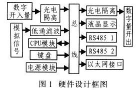 该装置按功能分为CPU模块、交流插件、数字量I/O微机保护、通信、人机接口单元和电源单元。通信接口直接与上位机或通信管理机连接,人机接口采用 128x64点阵式液晶显示器和专用键盘,显示信息量大,操作方便,硬件设计框图如图1所示。该微机保护装置具有16路开入量,16路开出量,15路模拟量,CPU模块原理框图如图2所示。由于dsPIC33F具有强大的汁算能力和完善的控制功能,可单独完成计算、控制、通信、人机接口等功能,减少了器件数量,简化硬件结构。又因dsPIC33F内部集成RAM、Flash、A/D转换器等,使得外同扩展电路很少,进一步简化硬件结构,基本实现了总线不出芯片没计,极大提高保护装置的抗干扰性和可靠性。