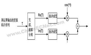 调制信号的码片速率为3.84 Mcps ,扩频过程产生的复值码片序列的调制为QPSK,具体的调制框图(如图3所示)。