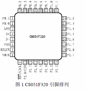C8051F320 是由美国Cygnal 公司推出的C8051F 系列单片机中的一款用于USB 设备的小型单片机。该器件内部集成有2304 Byte RAM 和16K Byte 的Flash 存储器。由于利用该芯片进行设计时可以不需要任何外部元件(包括电阻和晶振),因而是小型USB 应用的理想选择。与其它同类USB 产品相比,C8051F320 主要具有如下一些特点: