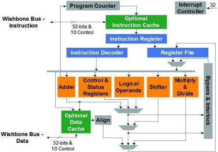 为了加快微控制器平台的开发,几个外围元件可与LatticeMico32微处理器一起使用。通过Wishbone总线接口把这些元件连接到处理器,这是一个由OpenCores组织制定的免费开放协议。通过使用这个开放源总线接口,用户可以把自己的WISHBONE元件放入其嵌入式设计。