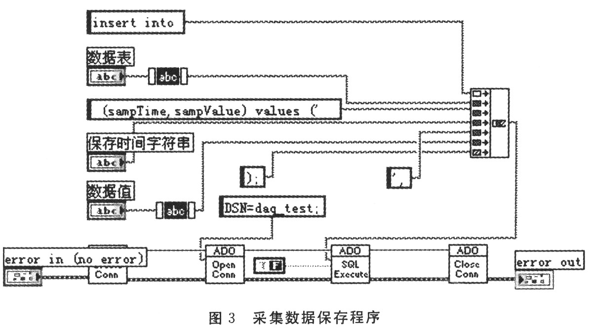 工作过程中,整个系统从被测对象开始.通过传感器转换成电信号,经过信号调理模块进行简单的信号处理,将信号送至数据采集卡进行采集。然后用软件进行处理。在采集过程中将数据保存到数据库里,实现了历史数据的访问。总体设计框图如图1所示。