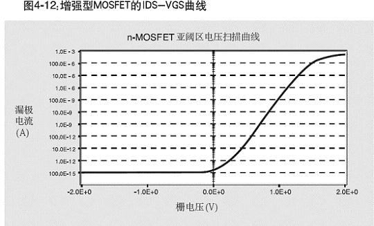 图4-12 是一个增强型MOSFET的IDS对VGS曲线。该曲线是在4200- SCS型开云棋牌官网在线客服特性测试系统上得到的。