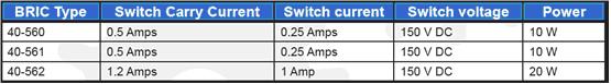 表2:下表中所示的是BRIC模块中不同的开关类型的不同额定值。