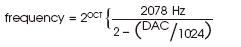 其中1kHz ≤频率≤ 68MHz,OCT是用于在16个频率块中选择某个块的4位代码(0–15),DAC是在选定的块内部选择频率的10位代码(0–1023)。