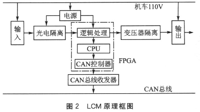 机车逻辑控制模块(LCM)是一种铁路机车专用的采用硬件可编程的逻辑控制单元,是机车实时监测与故障诊断系统的一个CAN网络节点。将该模块与整个系统应用在干线电力机车上,实现了传统的继电器控制电路的可编程无触点控制,大大减少了控制电路的触点和布线,简化了机车控制电路的设计、生产和调试过程,并使机车电气系统具有实时检测、故障诊断与存储显示等功能;特别是列车速度提高后,继电器电路因振动加剧而出现误动作,无触点逻辑控制模块可以方便地克服该缺点,提高控制系统可靠性,并可方便地用硬件描述语言实现各种控制功能,具有灵活性和通用性。无触点控制是机车电气控制系统的发展方向。