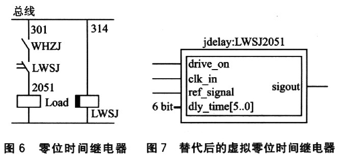 对于时间继电器.在输出级根据继电器状态表里的状态信息,通过对外部输入脉冲的计数来达到延时动作的目的。这种处理方式得到的延迟时间精度高,状态稳定。以零位时间继电器为例说明其一般替代原理。其继电器原理如图6所示,替代后的虚拟继电器如图7所示。