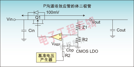 图1:CMOS LDO的基本架构及简单应用线路图