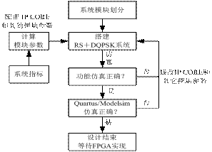 其中RS IP core生成编码和解码模块,NCO IP core和FIR IP core联合完成DQPSK调制和解调。系统中所有的模块都是由Simulink和DSP_Builder库中的模块构成的。其中阴影部分说明该模块采用了Altera公司的IP core。