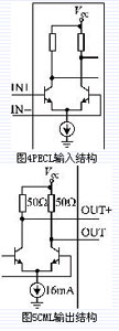 CML电平是所有高速数据接口中最简单的一种。其输入和输出是匹配好的,减少了外围器件,适合于更高频段工作。它的输出结构如图5所示。