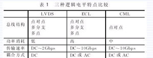 这几种高速逻辑电平在目前都有应用,但它们在总线结构、功率消耗、传输速率、耦合方式等方面都各有特点。为了便于应用比较,现归纳以上三类电平各方面的特点,如表1所列。
