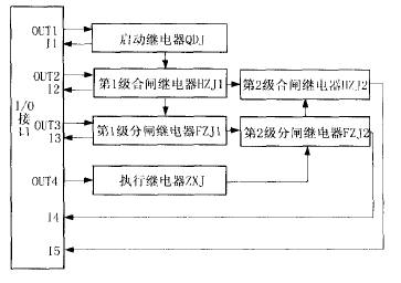 微机保护系统的控制接口由I/O接口和微型继电器组成,典型电路是将分合闸继电器分成2级,第1级控制第2级。第2级控制主回路的分合闸接触器。原理框图如图1所示。