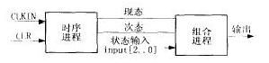 状态机的设计可采用单进程,双进程,3进程等进行编写,根据微机保护控制接口的应用特点宜采用双进程来描述状态机,即一个时序进程和一个组合进程。时序进程负责旧次态到新现态的转换,以及异步复位。组合进程完成根据现态决定状态机输出的变化,根据状态输入来决定新的次态。双进程状态机的逻辑框图如图3所示。