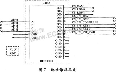 对高位的地址线A19~A22进行地址译码,获得各芯片的片选线,如图7所示。