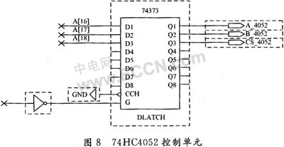 如果不是对SST29SF040进行读写,则高位地址线A16~A18仍然可以利用,这里将其作为74HC4052的3个输入控制线A,B,INH,即图8中的A_4052,B_4052,CS_4052。