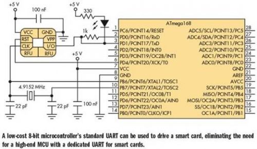 然而,所需的基于智能卡系统中,适当的通信系统的硬件和固件开发,给设计师带来了新的挑战。不幸的是,只有一些高档微控制器具有可以直接驱动智能卡的专用UART。里所述的设计,可以让你采用低端8位微控制器上标准的UART来驱动智能卡,本文采用的MCU为Atmel公司的AVR ATmega168。