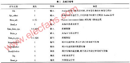 从设备信号是与主设备相连接的一组信号端口,这里所针对的SD卡设备的Avalon从端口需定义的信号端口如表1所列。