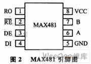 当用SPCE061A单片机对RS-485信号进行分析时,采用Maxim公司的MAX481作为RS-485的驱动芯片。该芯片内部集成了1个驱动器和1个接收器,符合RS-422A和RS-485通信标准。MAX481引脚如图2所示。引脚功能如表1所列。