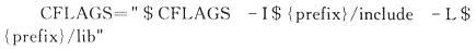 为了避免安装过程出现MINIGUI-LiteVerl.2.6 orLater的警告信息,必须对configure.in文件作出修改,添加下面的一行语句指定头文件和库文件的寻找路径: