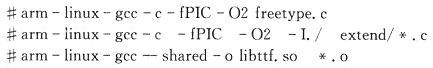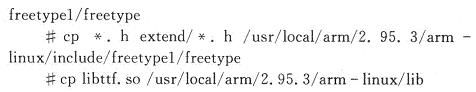 这个是TrueType字体的支持库,用来显示文字,解压freetype-1.3.1.tar.gz,进入目录,然后./con-figure会生成Makefile文件,因为没有安装Xlib testexample,后面编译通不过,屏蔽掉关于test的部分代码,打开Makefile文件,找到有“FTTESTDIR”字段的行注释掉,一共有7处。然后make编译库文件,在freetype-1.3.1/lib目录下,生成链接库文件:
