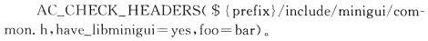同时对包含MiniGUI常用的宏以及数据类型定义的common.h文件路径进行修改,在参数AC_CHECK_HEADERS行中添加如下代码: