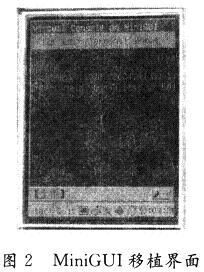 至此,MiniGUI已经成功移植到了开发板上,图2为MiniGUI在开发板上启动后的画面。此后可以根据需要,继续修改MiniGUI库函数及各种资源,并且编写自己的应用程序,使开发板上的界面更加美观和完善。