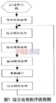 综合处理程序也就是主程序,主程序负责单片机的启动,先后调用各个模块子程序,实现系统功能。综合处理程序流程图如图7所示。