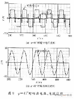 基于以上理论分析及系统的硬件与软件设计,用PSpice软件对移相功率控制超声电源进行仿真。如图7、图8所示。