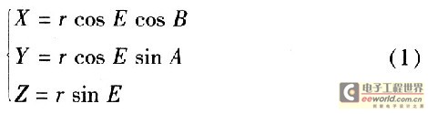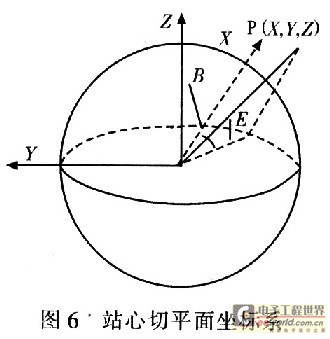 显然,若卫星P与观测点之间的距离为r,E为任意可见卫星P的仰角,B为卫星的方位角,则P的三维坐标为(X,Y,Z)满足: