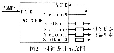 2)PCI2050B的从侧有10个时钟输出S-clkout[9:0],其中9个时钟输出可以供给扩展的PCI槽,为保证时钟输出同步,另1个必须反馈给从侧的输入时钟S_CLK,每一个时钟只能驱动一个负载。