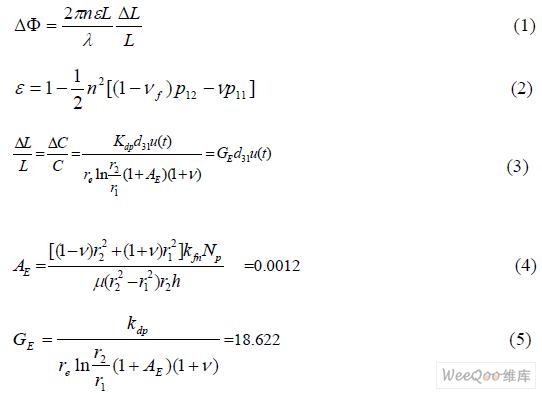 由 PZT 筒实现的光纤相位调制是把电压加于PZT 筒上产生压电效应,使PZT 筒的外径 周长发生变化,带动缠绕PZT 筒的光纤长度及折射率也发生变化,从而改变光纤内传输的 光波相位引起的相位变化,其数学表达式为: