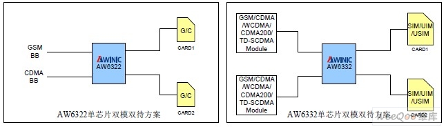 图2 AW6322和AW6332的单芯片双模双待方案