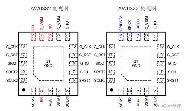 图5 AW6332和AW6322的PIN脚分布图