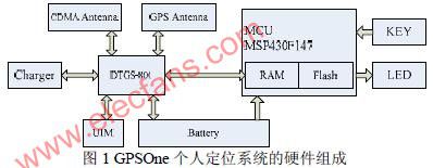 GPSOne综合了GPS、CDMAlX(码分多址分组数据交换网络)、GIS(地理信息系统)和互联网技术,是美国高通公司为基于位置业务而开发的定位技术,采用Client/Server方式。它将无线辅助A-GPS和高级前向链路AFLT三角定位技术有机结合,实现高精度、高可用性和较高速度的定位。在A-GPS定位技术无法使用的环境中,会自动切换到AFLT三角定位技术,确保定位的成功率和精确度。这里基于GPSOne模块DTGS-800和低功耗单片机MSP430设计并实现了具有定位、监控和报警功能的个人定位终端。