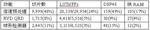 实施和仿真包括图 2 所示的检测过程,但不包括软输出生成模块。目标芯片是 Virtex-5 XC5VFX130T-2FF1738 FPGA。设计的时钟频率为 225MHz,可用的数据率为 83.965Mb/s。