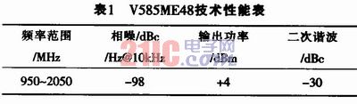 压控振荡器芯片可根据系统带宽等要求选用Z-com公司的V585MFA8,该器件的主要技术指标如表1所列。