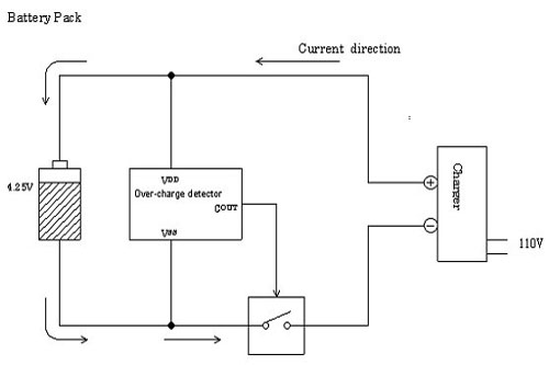 当锂离子电池有过度充电状态时,为防止因温度上升所导致的内压上升,须截止充电状态。此保护IC即检视电池电压,当侦测到过度充电时,则过度充电侦测的Power-MOSFET使之OFF而截止充电。此时所应注意者,就是过度充电的检测电压的高精度化,在电池充电时,使电池充电到饱满的状态是使用者很在意的问题,同时,兼顾到安全性的问题,就得在达到容许电压时截止充电状态。要同时符合这两个条件,就要有非常高精度的侦测器,目前精度为25mV,但将来势需有更精度的要求。