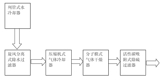 3、增加压缩机式冷却器。气体通过压缩机式冷却器,露点会降低到 5 ℃左右,分离出来的液体从自动排液器排出,气体出来后进入 perma pure 管进一步干燥;此时,通过 perma pure 管的气体露点将达到-10℃以上,水汽将由仪表空气带走。
