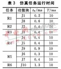 控制系统瞬时特征数据如表3所列,其中,任务运行周期T根据系统性能的需要提出,而且,在开发平台上是可行的,最大执行时间tE为开发平台上反复运行并求取最大值的结果。