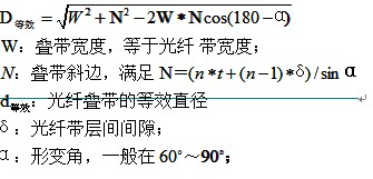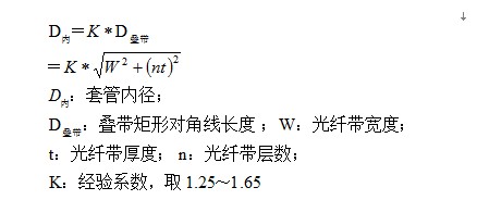其中K值的大小与生产工艺控制有关,K值考虑的大,那么光纤叠带在套管中可活动的空间就大,套管中的光纤叠带质量就更有保证,但是若套管外径设计的过大,那么光缆的成本就会大幅升高。