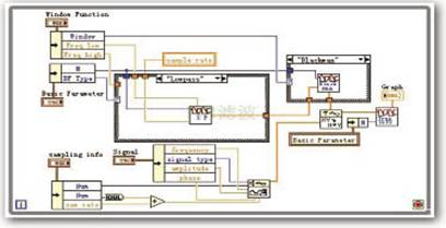 LabVIEW采用前面板和后面板来编程。前面板用于输入数据和显示结果;后面板则为滤波器设计的主程序。